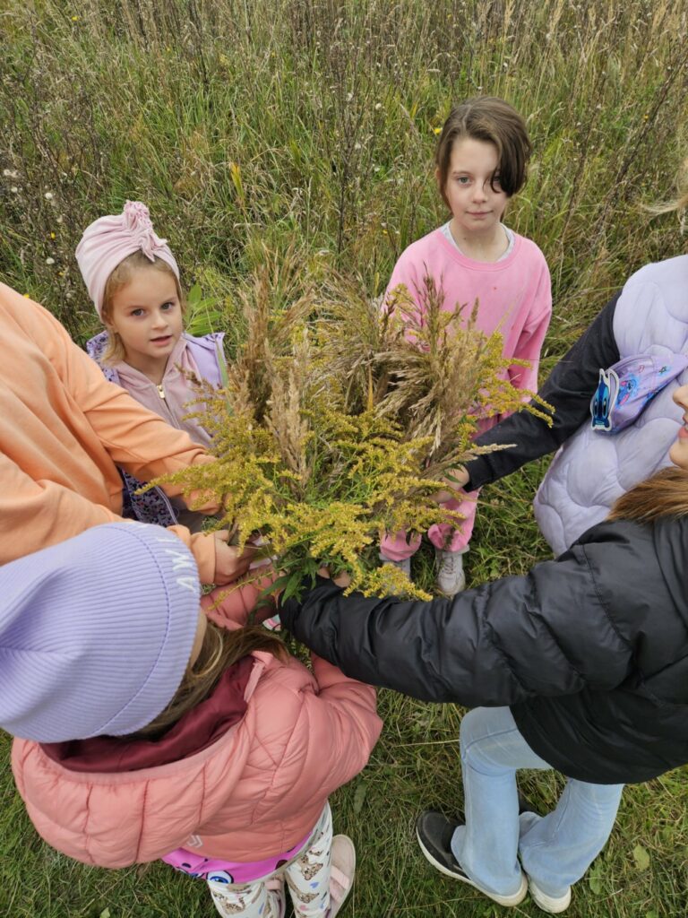 Na początek wyruszyliśmy w teren, by zbierać krzewy, trawy i inne naturalne skarby, które jesień tak hojnie nam ofiarowuje. Każdy znalazł coś wyjątkowego — od delikatnych źdźbeł po pięknie uschnięte kwiatostany. To niesamowite, jak wiele uroku kryje się w prostych, niepozornych roślinach 🌼🍁
