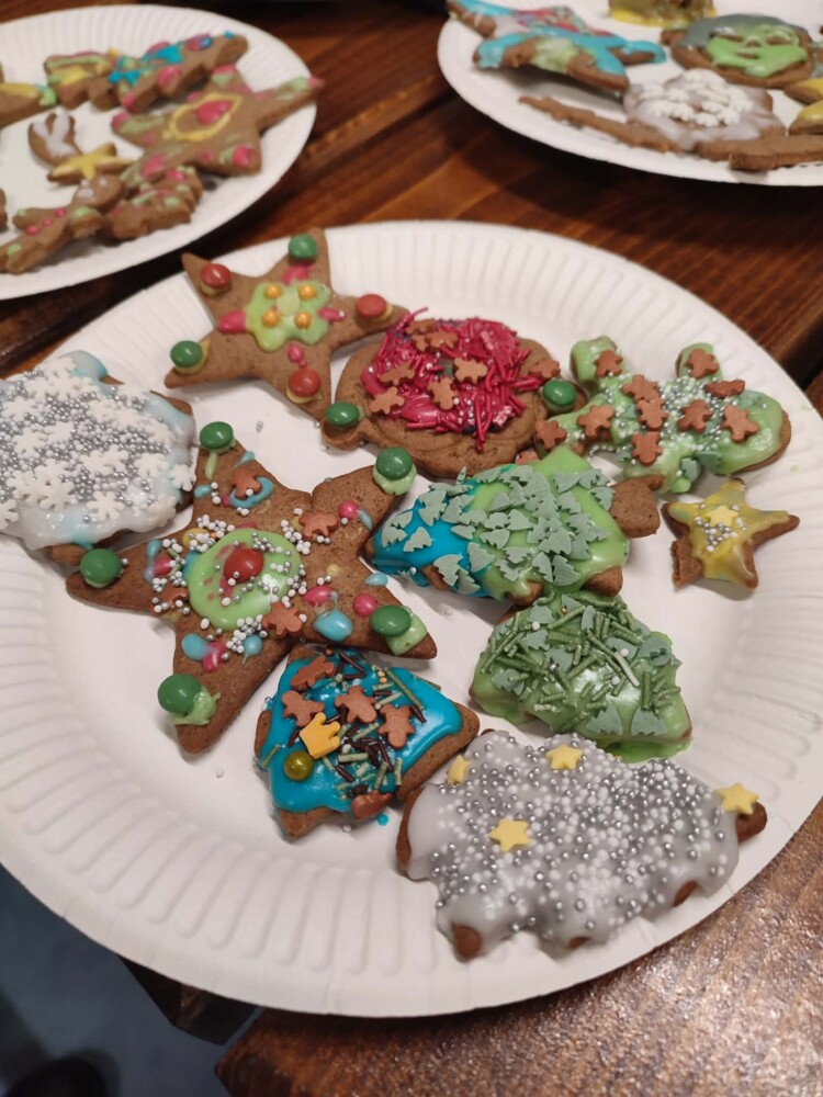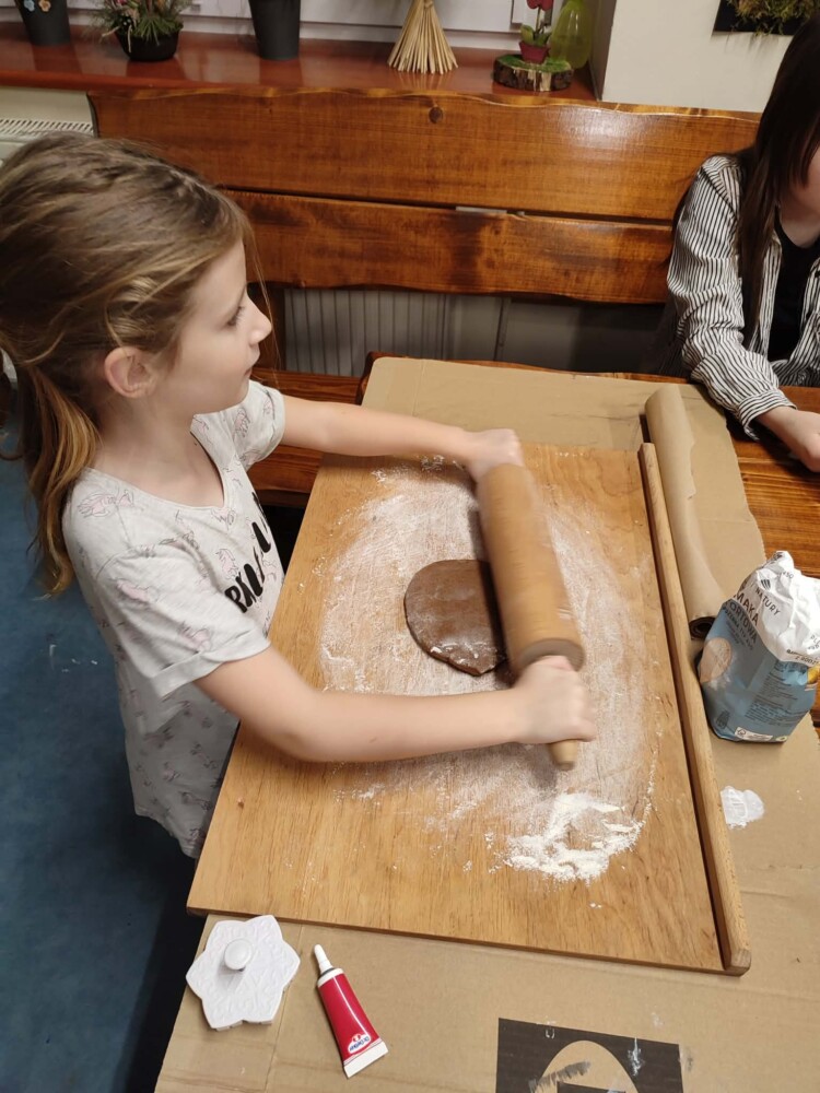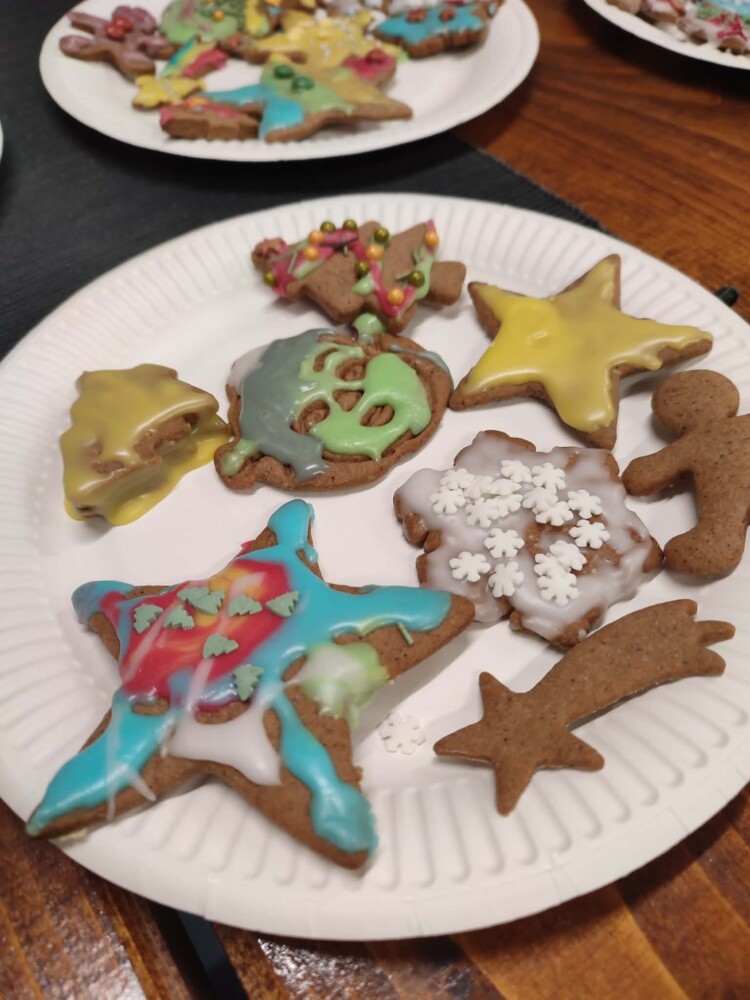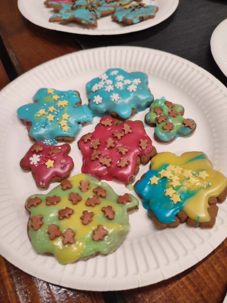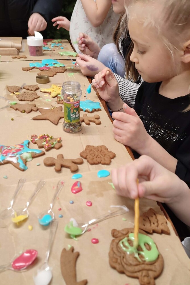 Podczas warsztatów kulinarnych tradycyjnie już tworzyliśmy słodkie i bardzo kolorowe pierniki. Na warsztatach plastycznych powstały piękne, wykonane w większości z naturalnych elementów „portrety” naszych choinek😊