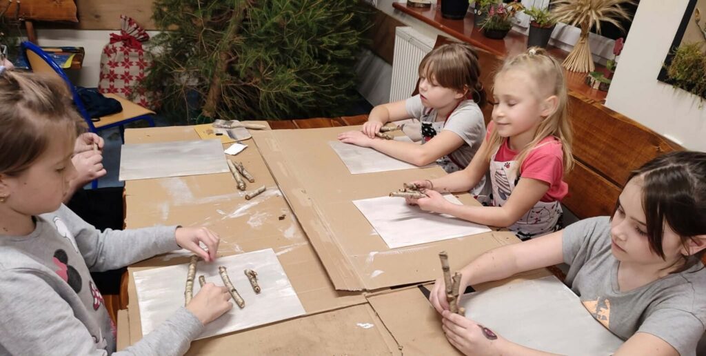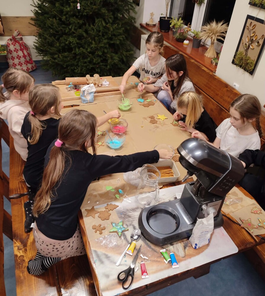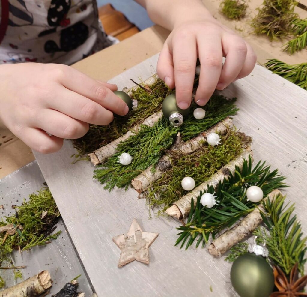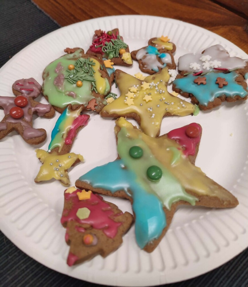 Podczas warsztatów kulinarnych tradycyjnie już tworzyliśmy słodkie i bardzo kolorowe pierniki. Na warsztatach plastycznych powstały piękne, wykonane w większości z naturalnych elementów „portrety” naszych choinek😊