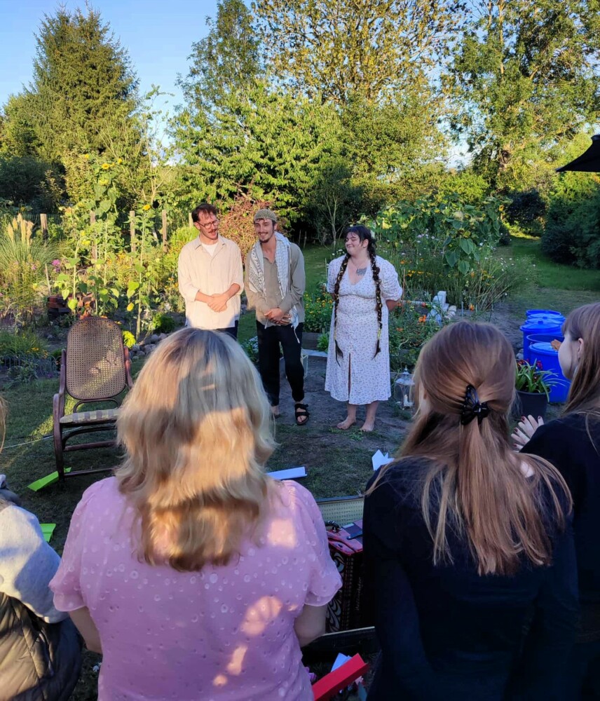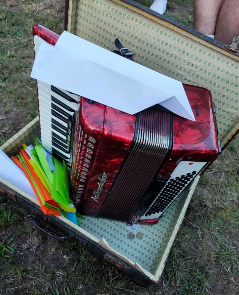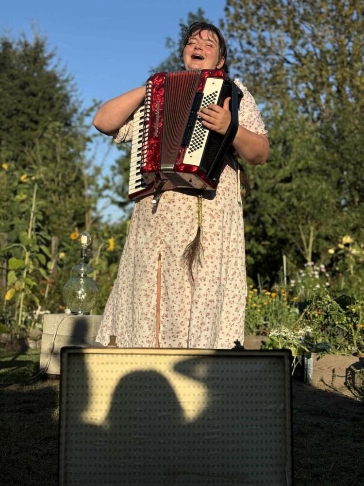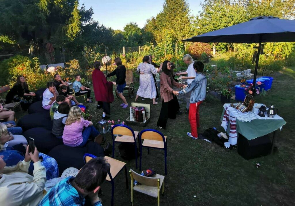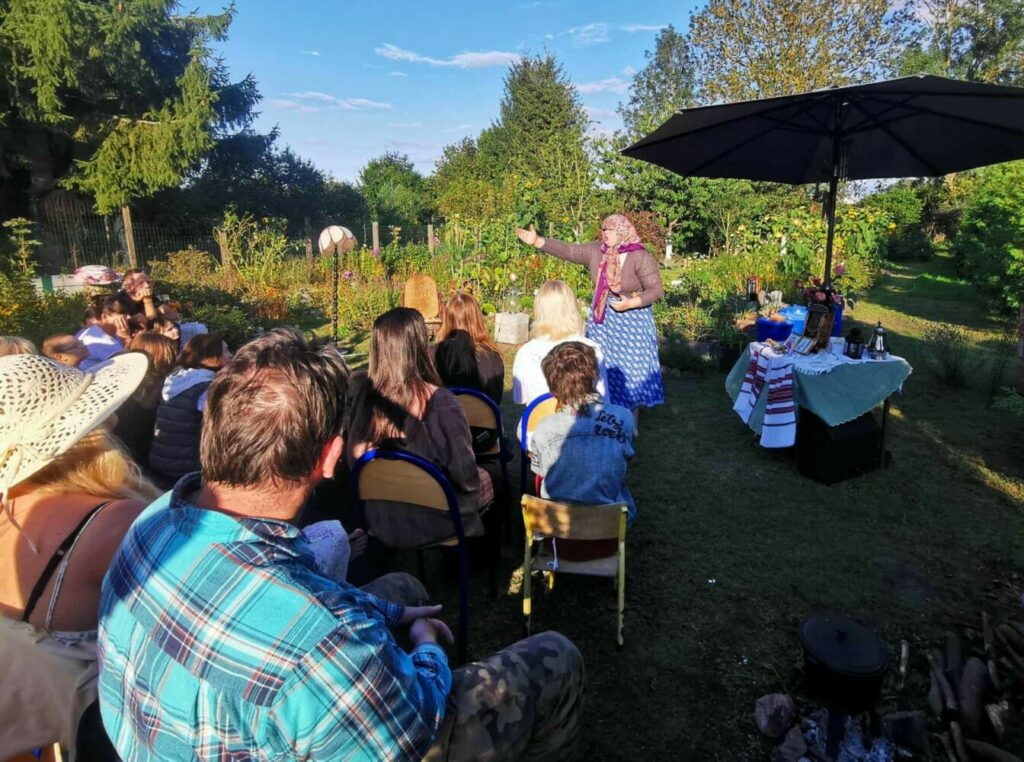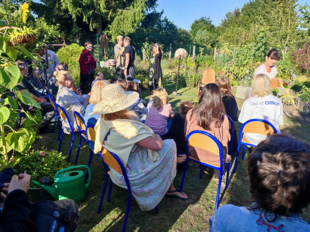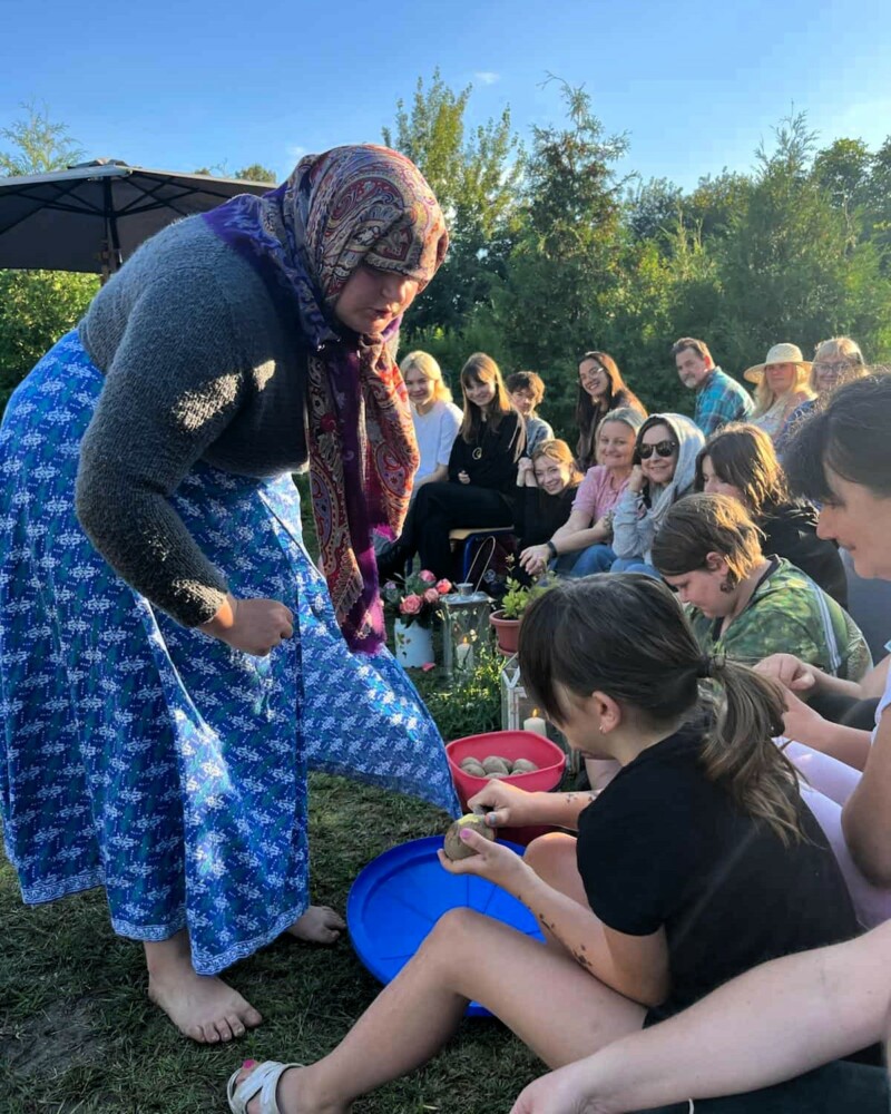 Performance Mariii Lisovskiej „The Road Yrij” w ramach projektu Market Groseria Passage w miejscowości Stolec. Kontynuacja relacji z wydarzeń projektowych. Mariia Lisovska została zaproszona do Stolca przez Zaytun Ensemble. Pomysł polegał na tym, aby jej performance odbył się w ogrodzie jednej z rodzin. W tej szczególnej scenerii – jednocześnie kameralnej i otwartej – Lisovska zaprezentowała swoje dzieło The Road to Yrij, które podejmuje temat przeszłości i teraźniejszości Ukrainy, a także osobistego losu artystki w kontekście wojny i ucisku.
