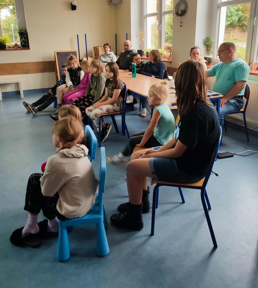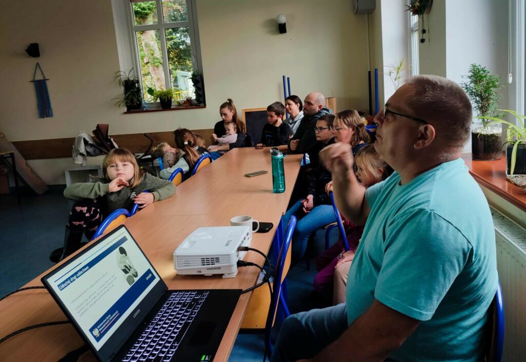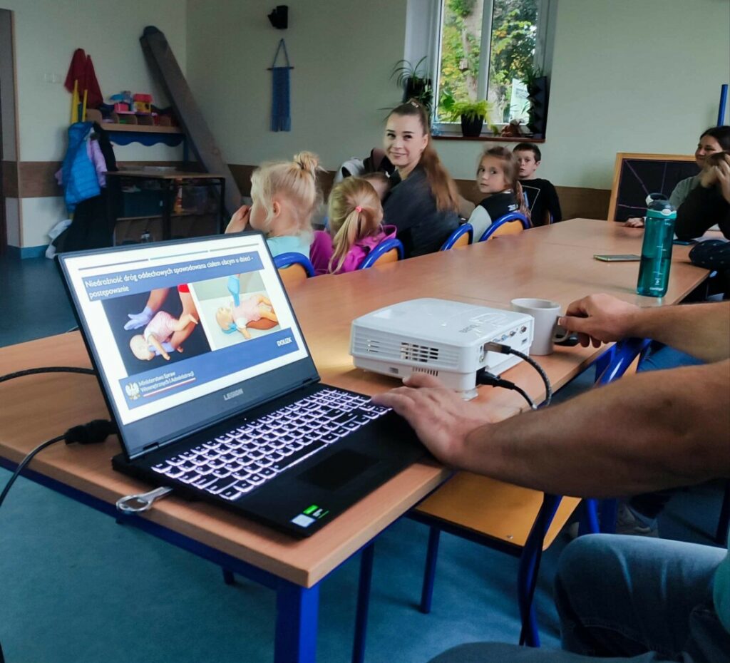 W filii w Stolcu zorganizowaliśmy spotkanie z operatorem numeru alarmowego 112, Panem Marcinem Chołajem, który w bardzo komunikatywny sposób przekazał dzieciom, rodzicom oraz opiekunom najważniejsze informacje dotyczące udzielania pierwszej pomocy.