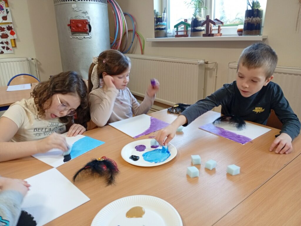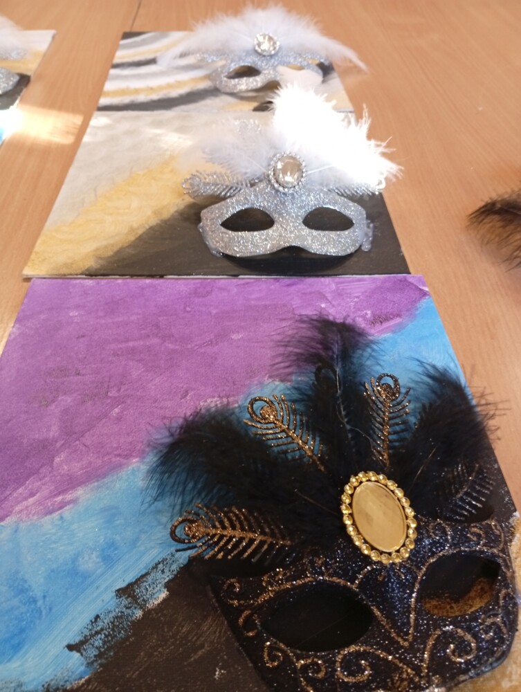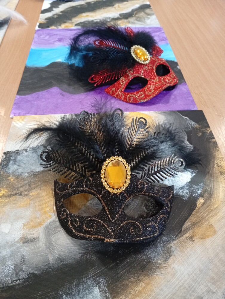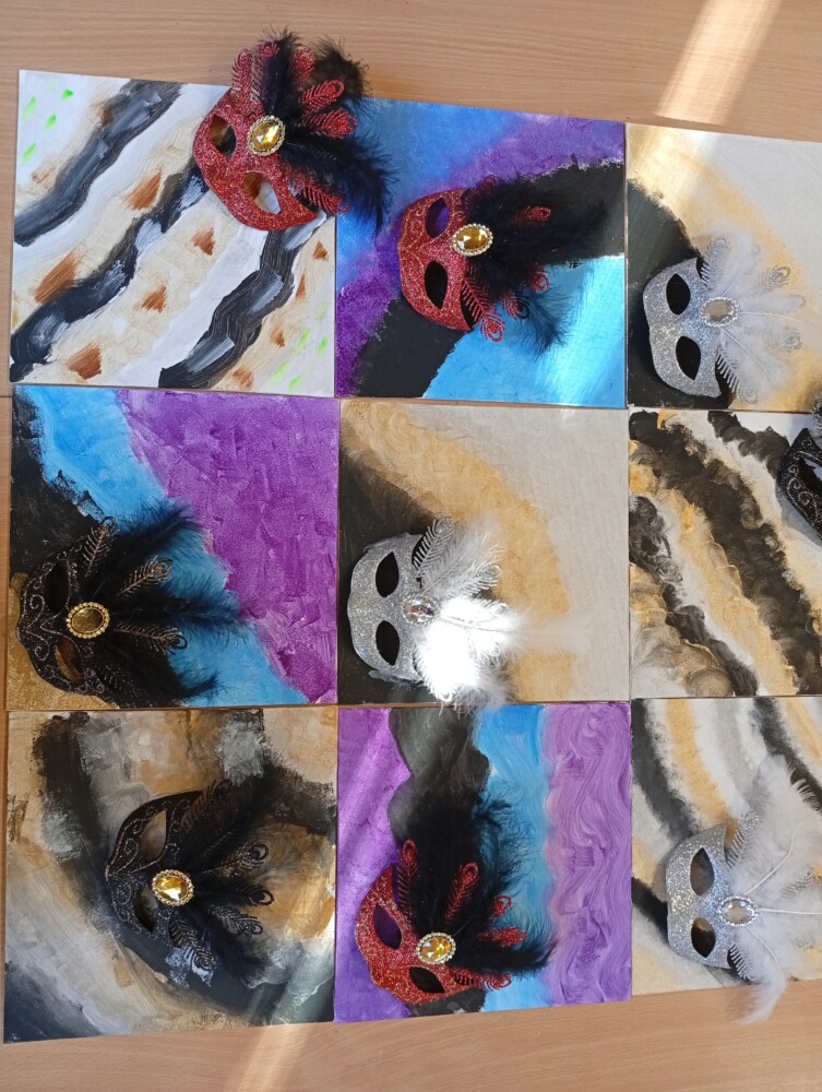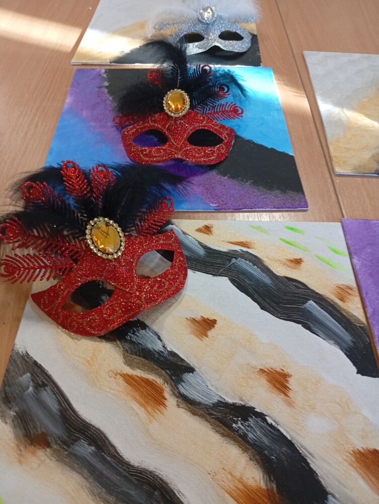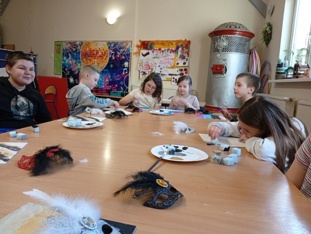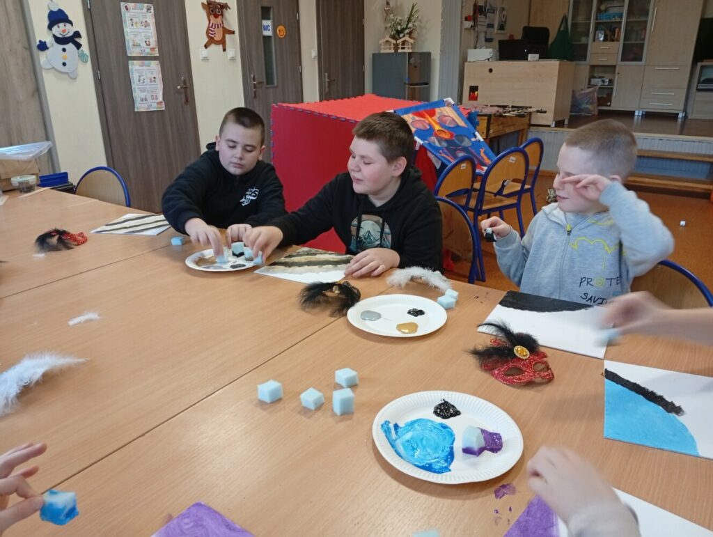 Po dawce wiedzy przyszedł czas na warsztaty artystyczne 🎨 Powstały kolorowe, karnawałowe obrazy, a przy okazji było mnóstwo śmiechu, kreatywności i świetnej zabawy 🤩