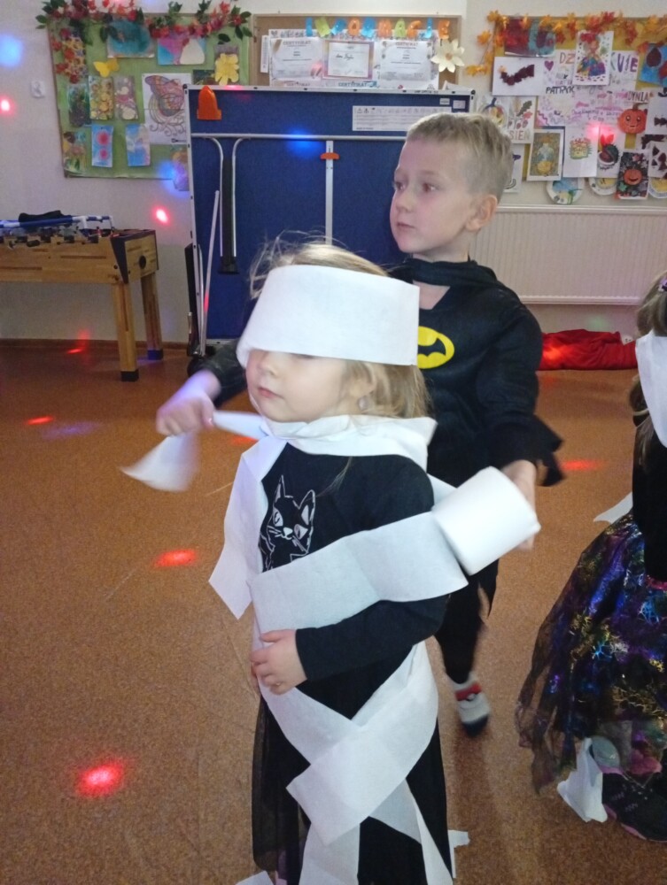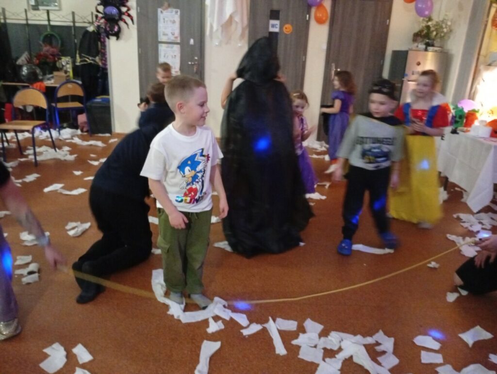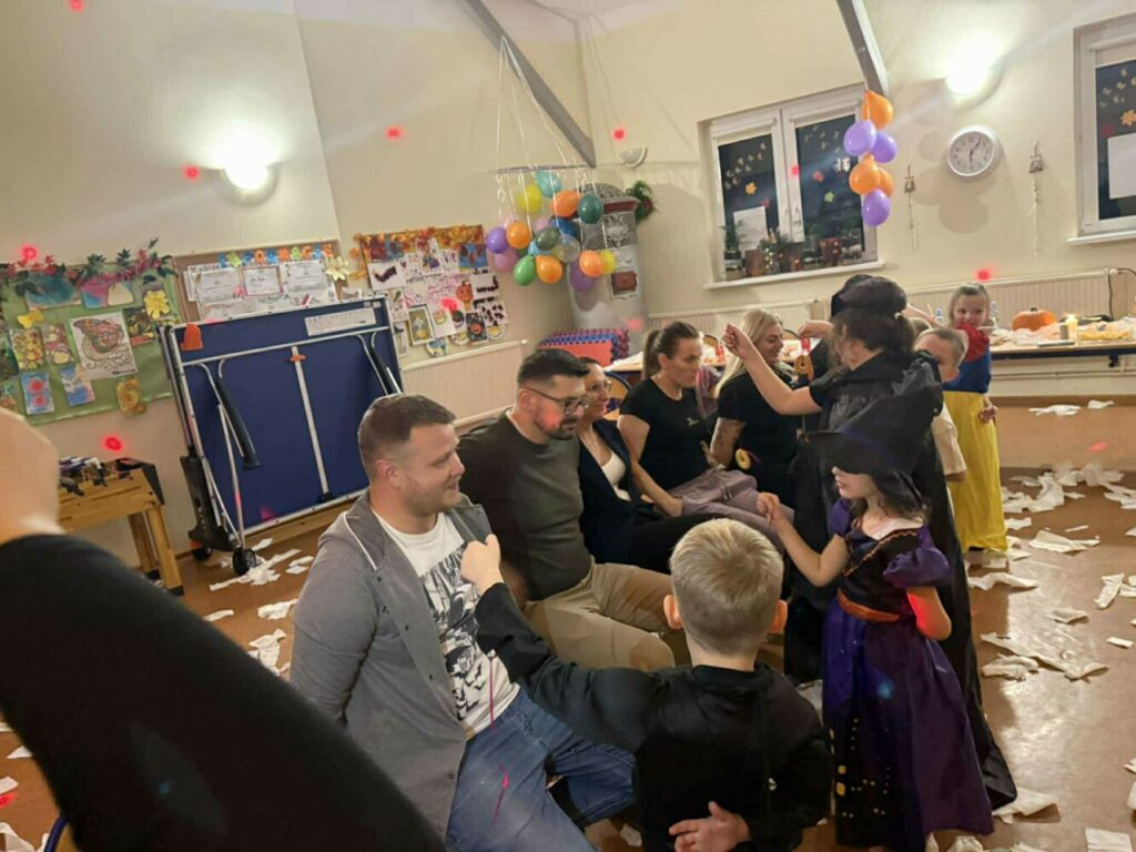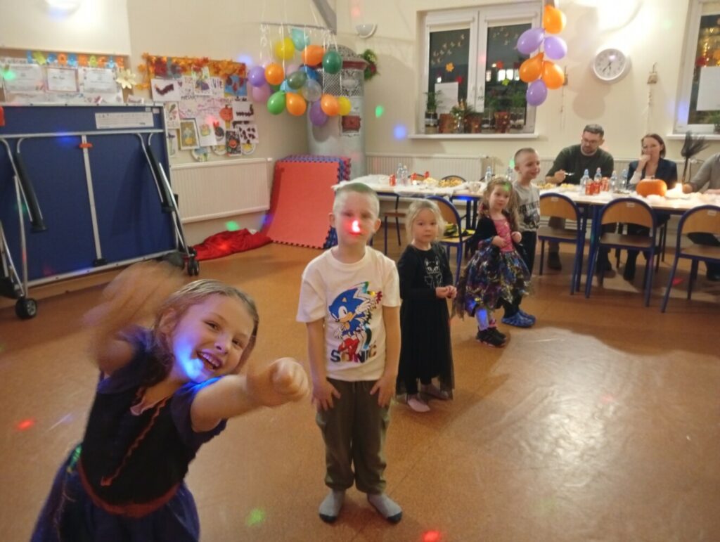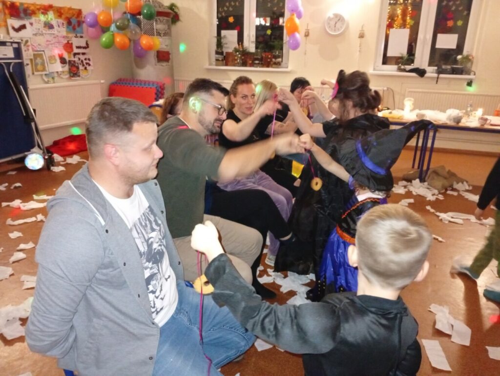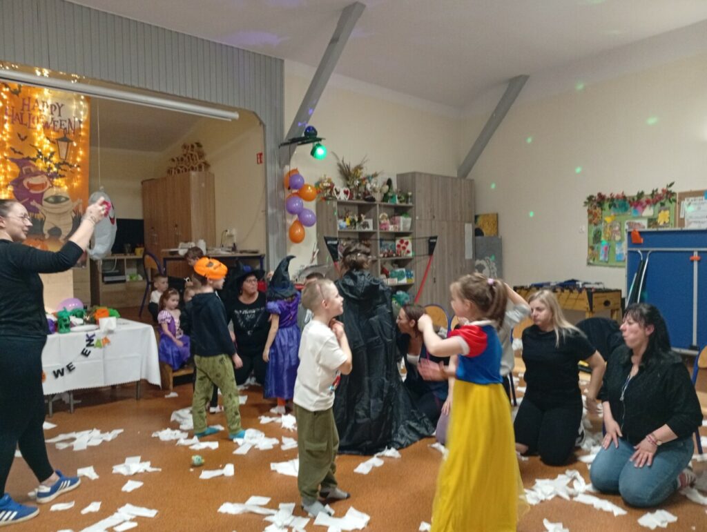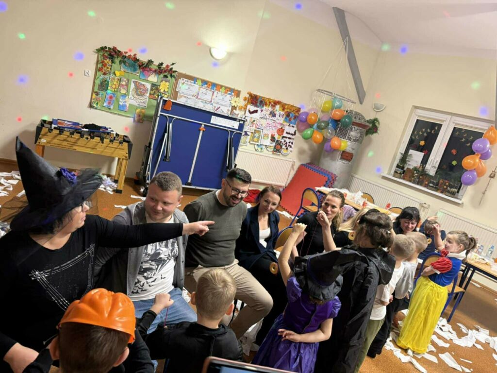 Zarówno mali, jak i duzi uczestnicy bawili się świetnie podczas wspólnej zabawy Halloween 🎭. Nie zabrakło konkursów dla całych rodzin, śmiechu, przebierańców i oczywiście — strasznego stołu z pysznym poczęstunkiem 🍬🕷️🧁