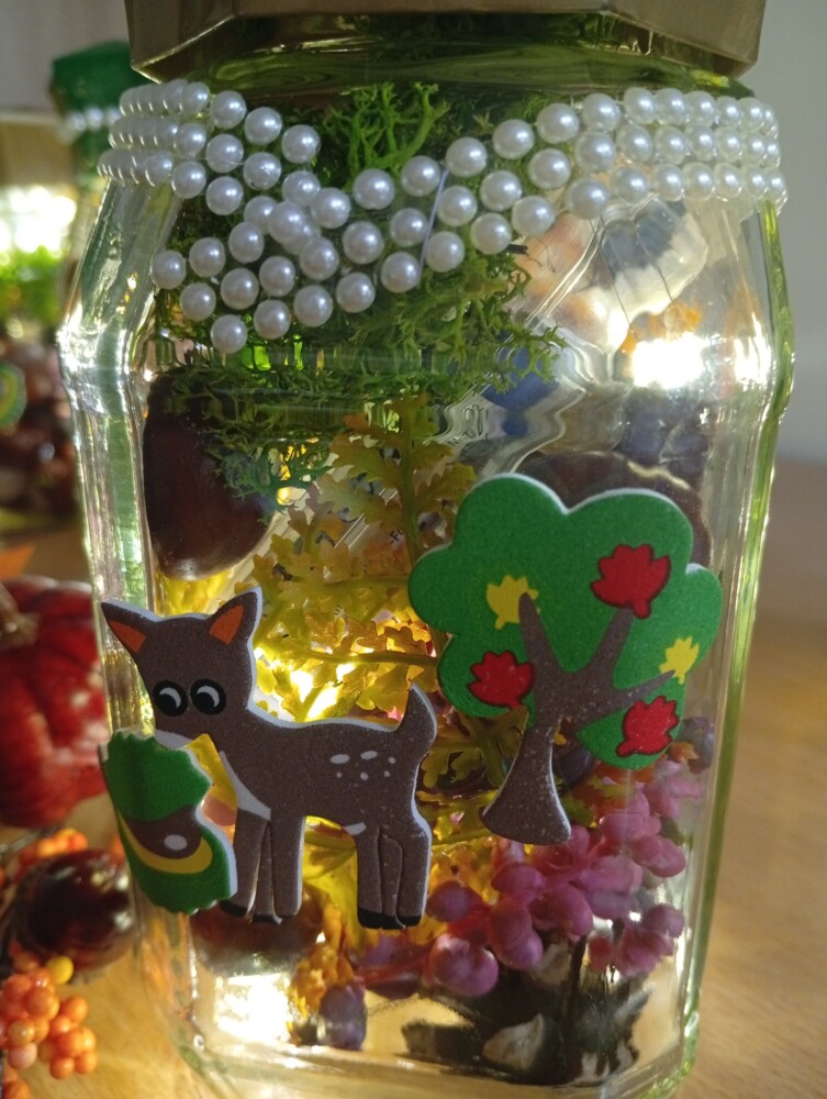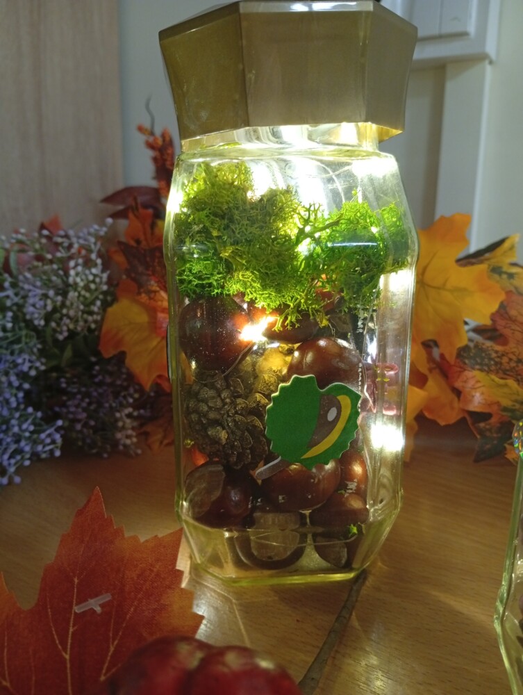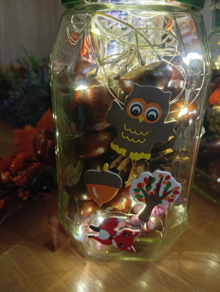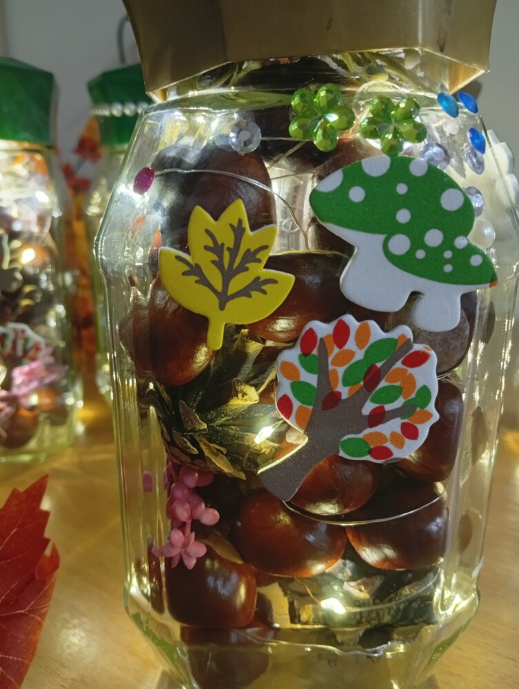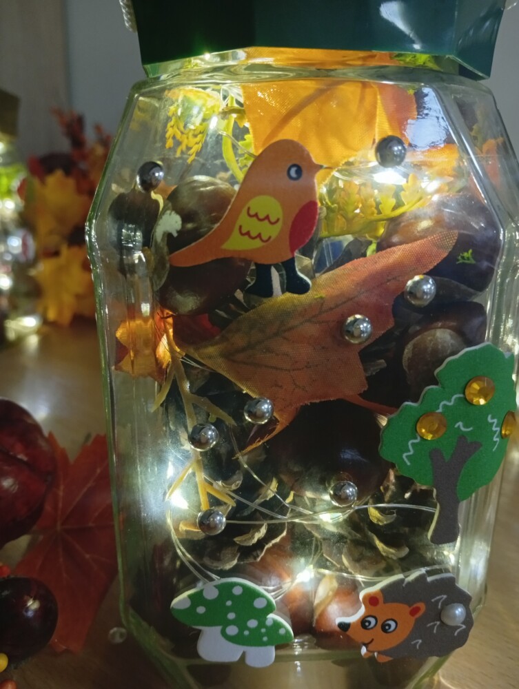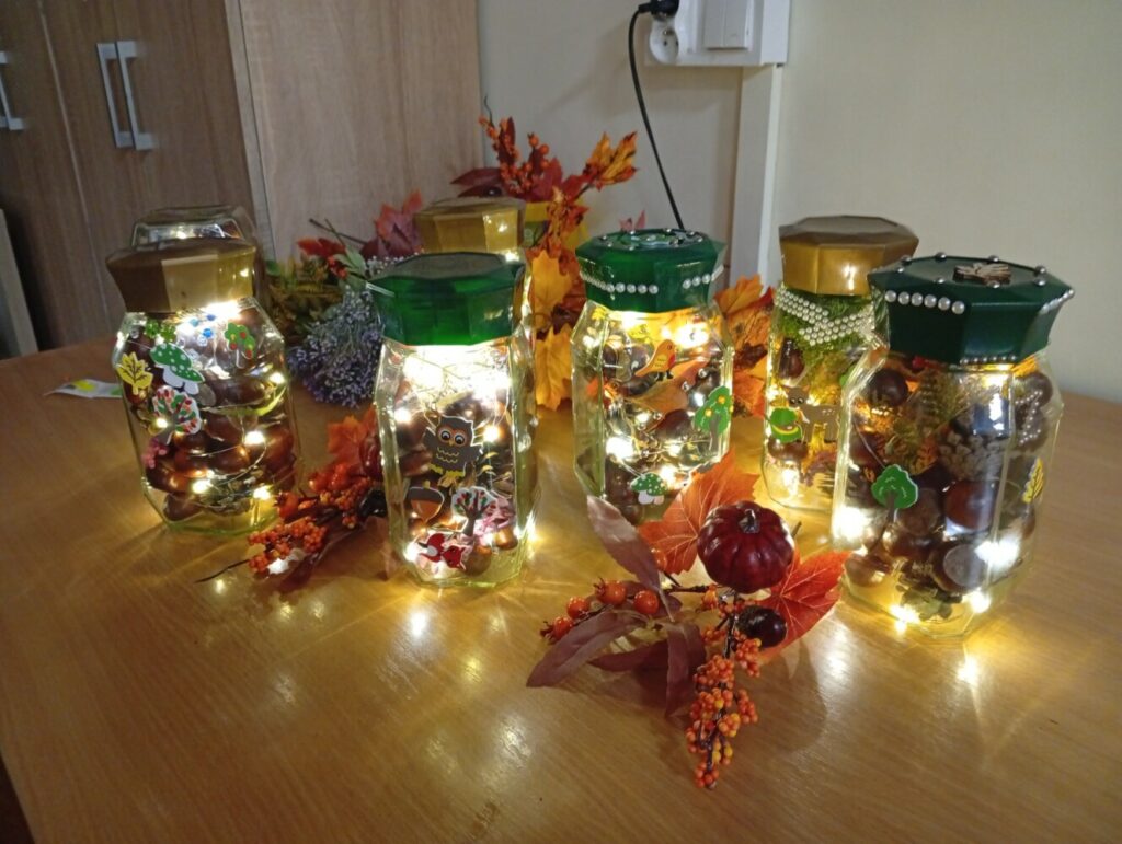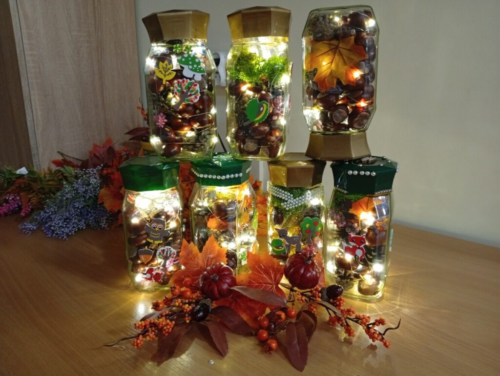 Dzieci z Klubu w Wąwelnicy w pełni poczuły jej magiczny klimat 🌰🍁🌟. Z jesiennych darów – kolorowych liści, żołędzi, kasztanów i pachnących szyszek – wyczarowały przepiękne jesienne lampki, które rozświetlą długie wieczory i przypomną o urokach tej pory roku.